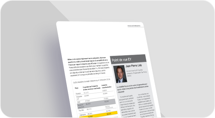 wwwwwwwww..ee.eyyy..cc.com/om/om/atatfrtrtr/atactivactivtractiviteneenessess Même si elle semble légèrement moins prégnante, l’épineuse question du coût du travail érode toujours la compétitivité de la Point de vue EY France par rapport à d’autres pays d’Europe : à la question « où la France doit-elle concentrer ses efforts pour maintenir sa position concurrentielle dans l’économie mondiale ? », 39 % des dirigeants Jean-Pierre Lieb ont répondu « diminuer le coût de main d’œuvre », contre seulement 22 % lorsque le périmètre est élargi à l’Europe. Avocat Associé, EY Société d’Avocats, Responsable Tax Policy e EMEIA Coûts horaires de main d’œuvre au 4 trimestre 2016 Pays Ensemble de l’industrie Industrie et des services marchands manufacturière La stabilité fiscale est le socle indispensable pour Espagne 21,11 € 22,82 € que la vision à long terme des investisseurs puisse Royaume- 24,99 € 24,26 € s’épanouir Uni Italie 27,56 € 27,65 € En matière de fiscalité, Nos contraintes sont Moyenne 30,45 € 33,18 € nos gouvernants semblent trop fortes : notre histoire zone Euro avoir pris conscience de fiscale, nos engagements Pays-Bas 33,71 € 35,72 € l’importance de l’enjeu pour budgétaires européens, et e (3 trimestre 2016) l’attractivité française. Des même un contexte général Allemagne 35,25 € 40,79 € premières mesures ont de durcissement de l’assiette France 36,78 € 38,12 € même été prises comme fiscale en Europe. Là n’est Source : Centre d’observation économique et de recherche pour l’expansion de l’économie le suramortissement pour pourtant pas le réel handicap et le développement des entreprises : “Les coûts de la main d’œuvre dans l’Union européenne relancer l’investissement, de la France en matière de e au 4 trimestre 2016” ou un projet de baisse de fiscalité. Comme la France, l’impôt sur les sociétés l’Allemagne pratique une (IS), il est vrai réservé aux fiscalité élevée. Mais pour Impôts sur le revenu des sociétés en 2016 entreprises de petite taille. cette dernière, ce n’est pas Le mouvement s’enclenche un frein à son attractivité. Irlande 12,5 % pour une approche favorable À la différence de nous, nos Hongrie 19 % (baisse à 9 % prévue pour 2017) de la fiscalité vis-à-vis de voisins d’outre Rhin affichent Finlande 20 % l’entreprise. une stabilité sans faille de Le point négatif, c’est leur politique fiscale. C’est là Royaume-Uni 20 % (baisse à 17 % prévue d’ici 2020) que ces mesures sont l’essentiel : cette stabilité est Danemark 22 % (baisse de 6,3 % depuis 2015) timides et qu’elles arrivent le socle indispensable pour Pays-Bas 25 % (baisse prévue dans les années à venir) tardivement : la France que la vision à long terme Espagne 25 % (baisse de 10 % depuis 2015) affiche toujours le taux d’IS des investisseurs puisse Allemagne 30 % le plus élevé de la zone Euro s’épanouir. Ainsi, avant de Belgique et probablement ne pourra-t- courir après un dangereux 33 % elle jamais rejoindre des pays et impossible dumping fiscal, France 38 % (baisse à 28 % prévue, d’ici 2020, comme l’Irlande, la Hongrie pensons à stabiliser notre progressivement selon la taille et le chiffre d’affaires ou encore le Royaume-Uni. fiscalité pour gagner la des entreprises) confiance des investisseurs. Source : EY Global Tax Policy Outlook for 2016 Baromètre EY de l’attractivité de la France − Mai 2017 19