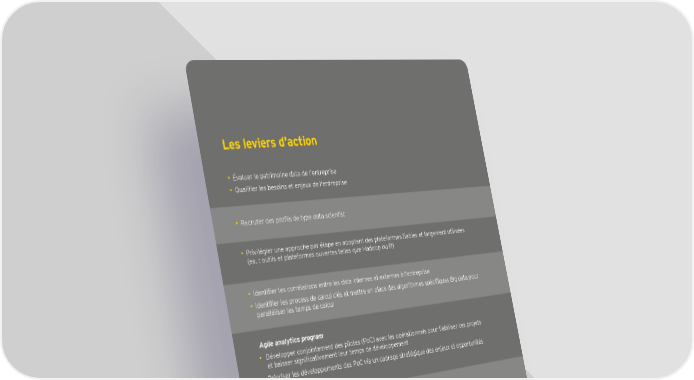 Les leviers d'action • Évaluer le patrimoine data de l'entreprise • Qualifier les besoins et enjeux de l'entreprise • Recruter des profils de type data scientist • Privilégier une approche par étape en adoptant des plateformes fiables et largement utilisées (ex. : outils et plateformes ouvertes telles que Hadoop ou R) • Identifier les corrélations entre les data internes et externes à l'entreprise • Identifier les process de calcul clés et mettre en place des algorithmes spécifiques Big data pour paralléliser les temps de calcul Agile analytics program • Développer conjointement des pilotes (PoC) avec les opérationnels pour fiabiliser ces projets et baisser significativement leur temps de développement • Prioriser les développements des PoC via un cadrage stratégique des enjeux et opportunités identifiés • Diffuser la culture data en interne via une double impulsion top-down et bottom-up • Mettre les collaborateurs/experts sur des arbitrages complexes nécessitant une forte expertise et favoriser ainsi les gains de productivité et l'innovation La confiance by design • Prise en compte en amont des risques techniques, juridiques et réputationnels • Prise en compte de la réglementation et des bonnes pratiques en amont de tout projet Big data • Transparence sur l'utilisation de la data, a fortiori la data personnelle Quelle maturité dans l'exploitation des données clients ? | 35