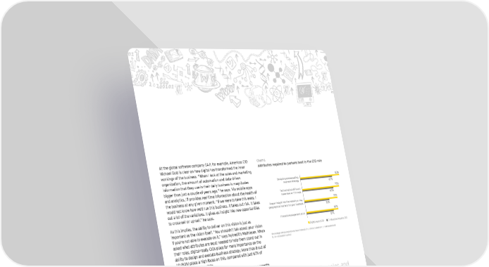 At the global software company SAP, for example, Americas CIO Chart 6 Michael Golz is clear on how digital has transformed the inner Attributes required to perform best in the CIO role workings of the business. “When I look at the sales and marketing organization, the amount of automation and data-driven information that they use in their daily business is magnitudes Designing and executing 83% bigger than just a couple of years ago,” he says. Via mobile apps business strategy 67% and analytics, IT provides real-time information about the health of Technological skills and 75% the business at any given moment. “If we were to take this away, I know-how on IT trends 65% would not know how we’d run this business. It takes out risk. It takes Deeper insight into the industry or key 70% out a lot of the variations. It gives us insight into new opportunities geographical markets for your business 52% to cross-sell or up-sell,” he says. 67% As this implies, the ability to deliver on this vision is just as Financial management skills important as the vision itself. “You shouldn’t talk about your vision 57% if you’re not able to execute on it,” says Nykredit’s Mathiesen. When Digital-ready CIO IT-intensive industry CIO asked what attributes are most needed to help them stand out in (Percentage of respondents who have chosen 8, 9 or 10 on a scale from 1 = not needed at all their roles, digital-ready CIOs place far more importance on the to 10 = absolutely needed) ability to design and execute business strategy. More than 8 out of 10 (83%) place a high focus on this, compared with just 67% of IT-intensive industry CIOs. Digital-ready CIOs are also far more likely to recognize the breadth of skills needed to succeed in the role: they place more importance on their close understanding of their market or industry (70% “ When I look at the sales and compared with 52% of IT-intensive industry CIOs), on their financial skills (67% versus 57%), and on their technological know-how (75% marketing organization, the versus 65%). “Just as importantly, this needs to be backed up with ruthless execution, which means CIOs need to really get their amount of automation and delivery organization in order,” says EY’s Tom Velema. data-driven information that they use in their daily business is magnitudes bigger than just a couple of years ago.” Michael Golz, CIO Americas, SAP Born to be digital | 21