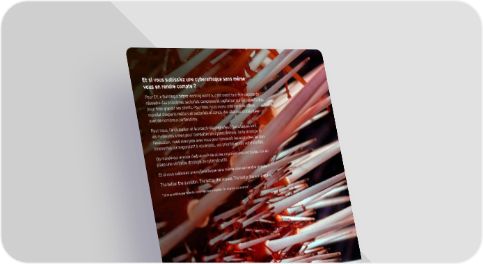 Et si vous subissiez une cyberattaque sans même vous en rendre compte ? Pour EY, « Building a better working world », c’est avant tout être capable de résoudre des problèmes sectoriels complexes et capitaliser sur les opportunités pour faire grandir ses clients. Pour cela, nous avons créé un écosystème mondial d’experts métiers et sectoriels et conclu des alliances stratégiques avec de nombreux partenaires. Pour nous, l’anticipation et la proactivité contre les cyberattaques sont les meilleures armes pour combattre les cybercriminels. De la stratégie à l’exécution, nous avançons avec vous pour concevoir les approches les plus innovantes correspondant à vos enjeux, vos priorités et vos vulnérabilités. Un monde qui avance c’est un monde où les organisations ont toutes mis en place une véritable stratégie de cybersécurité. Et si vous subissiez une cyberattaque sans même vous en rendre compte ? The better the question. The better the answer. The better the world works.* *Une question pertinente. Une réponse adaptée. Un monde qui avance.