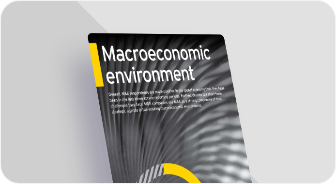 Macroeconomic environment Overall, M&E respondents are more positive in the global economy than they have been in the last three survey reporting periods. Further, despite the short-term challenges they face, M&E companies see M&A as a strong component of their strategic agenda in the existing macroeconomic environment. 81% of M&E executives are resilient in their economic outlook. 4 | Capital Confi dence Barometer