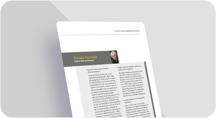 Comment la culture transforme les territoires or ct i al V c s Bernard Foccroulle a t P Festival d’Aix-en-Provence omAr c t © Ar • Quel est l’impact local du Festival • Quelles actions de médiation mettez-vous d’Aix-en-Provence ? en place avec vos publics ? Le festival d’Aix-en-Provence est un des Passerelles constitue un véritable laboratoire grands festivals estivaux de la région. Doté pour initier à l’opéra les plus jeunes, les d’un budget de 22 millions d’euros, il a attiré familles, les publics non avertis ou les plus 87 698 spectateurs en 2014 et a contribué fragilisés : en 2014, plus de 5 600 personnes au développement local. Il est à noter que le ont été impliquées dans ces programmes, mécénat contribue pour plus de 3,7 millions dont 2 900 scolaires, de l’école primaire à d’euros à ce budget, ce qui correspond à une l’université. L’action auprès de ces publics somme plus importante que la subvention crée une dynamique au sein du festival, d’État. Plus de 300 articles de presse grâce à l’investissement d’un large réseau paraissent chaque année à son propos, et 181 d’enseignants, d’acteurs associatifs et journalistes français et étrangers sont venus éducatifs locaux, d’artistes et pédagogues. en 2014 pour raconter et commenter notre activité. Ces retombées de presse représentent • Le festival intègre-t-il des dispositifs environ 20 des mentions d’Aix-en-Provence numériques ? dans la presse mondiale. Le festival ne Le festival est porteur d’une politique constitue pas seulement une vitrine pour la numérique, ce qui l’amène à développer des ville, mais un bénéÕce net public. En effet, collaborations avec différents partenaires chaque euro investi par les pouvoirs publics culturels, éducatifs et économiques sur le génère dix euros de retombées économiques, territoire de la région Provence-Alpes-Côte soit au total quelque 65 millions d’euros101, d’Azur. Chaque année, le festival propose des dont 29,2 millions au niveau local, 6 sur retransmissions d’opéras en direct dans des le plan régional, 18,6 sur le plan national villes de plus en plus nombreuses. En 2014, et 11 à l’international. En comparaison, 69 projections ont ainsi été organisées, dont les subventions publiques représentent 24 en France et 45 à l’étranger. 6,5 millions d’euros (État, ville d’Aix et Nous travaillons également de plus en plus à communauté d’agglomération, département proposer des contenus numériques (photos, et région). sons, extraits vidéo, interviews, webdocs…) La mise en œuvre du festival repose sur via notre site ou via des plateformes comme une équipe composée d’une cinquantaine Opera Online, menée par Opera Europa et de salariés permanents, équipe renforcée Arte. progressivement entre novembre et juillet pour atteindre près de mille personnes (artistes compris) pendant l’exploitation du festival. 101 Selon l’étude réalisée en 2012 par le bureau NOVA Création sous tension 89