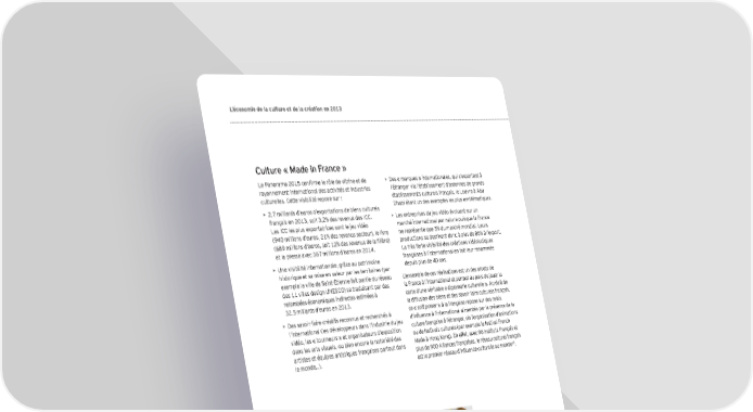 L’économie de la culture et de la création en 2013 Culture « Made in France » Le Panorama 2015 conÕrme le rôle de vitrine et de • De s « marques » internationales, qui s’exportent à rayonnement international des activités et industries l’étranger via l’établissement d’antennes de grands culturelles. Cette visibilité repose sur : établissements culturels français, le Louvre à Abu • 2,7 milliar ds d’euros d’exportations de biens culturels Dhabi étant un des exemples les plus emblématiques. français en 2013, soit 3,2 des revenus des ICC. • L es entreprises du jeu vidéo évoluent sur un Les ICC les plus exportatrices sont le jeu vidéo marché international par nature puisque la France (940 millions d’euros, 21 des revenus secteur), le livre ne représente que 5 du marché mondial. Leurs (689 millions d’euros, soit 12 des revenus de la Õlière) productions se destinent donc à plus de 80 à l’export. et la presse avec 367 millions d’euros en 2014. La très forte visibilité des créations vidéoludiques • Une visibilité internationale, grâce au patrimoine françaises à l’international en fait leur renommée historique et sa mise en valeur par les territoires (par depuis plus de 40 ans. exemple la ville de Saint-Étienne fait partie du réseau L’ensemble de ces réalisations est un des atouts de des 11 villes design UNESCO) se traduisant par des la France à l’international et permet au pays de jouer la retombées économiques indirectes estimées à carte d’une véritable « diplomatie culturelle ». Au-delà de 32,5 milliards d’euros en 2013. la diffusion des biens et des savoir-faire culturels français, • De  s savoir-faire créatifs reconnus et recherchés à ce « soft power » à la française repose sur des relais l’international (les développeurs dans l’industrie du jeu d’inÖuence à l’international alimentés par la présence de la vidéo, les « tourneurs » et organisateurs d’exposition culture française à l’étranger, via l’organisation d’animations dans les arts visuels, ou bien encore la notoriété des ou de festivals culturels (par exemple le festival French artistes et équipes artistiques françaises partout dans Made à Hong Kong). En effet, avec 96 Instituts Français et le monde…). plus de 900 Alliances françaises, le réseau culturel français 19 est le premier réseau d’inÖuence culturelle au monde . Laure Kaltenbach Directrice générale du Forum d’Avignon Made in Culture Il semble révolu le temps où accoler culture culturels et créatifs qui diffusent leurs idées au-delà et économie était tabou et synonyme d’une culture de leurs propres secteurs. Les passerelles - choisies réduite à sa seule dimension Õnancière. ou subies - avec le numérique sont déjà bien La triple nature de la culture - artistique, structurées. Reste à architecturer une stratégie économique et sociale - nous invite à penser le rôle française du Made in Culture incluant la culture et de la Õlière culturelle et créative sous un jour la Õlière créative dans les priorités audacieux. Les enjeux sont multiples : intégrer gouvernementales, associant initiatives et l’ensemble des acteurs de la Õlière (voire y inclure investissements publics et privés, protégeant le tourisme, le luxe et la gastronomie) pour structurer les libertés fondamentales et données personnelles les enseignements, faire vivre et revivre les métiers, des citoyens et annonciatrice d’un nouveau attirer les talents et les visiteurs mais aussi faire modèle social. Tout le reste ne sera – pour notre émerger une nouvelle génération d’entrepreneurs plus grand plaisir – que littérature. 19 Site internet de l’institut Français e 18 2 Panorama de l’économie de la culture et de la création en France