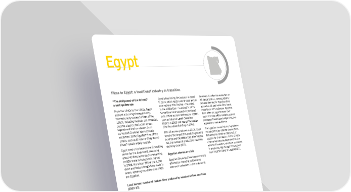 =_qht F ilms in E gyp t: a traditional industry in transition “ T he H ollywood of the O rient, ” =_yhtÌk Öomrik`in_ file indmktry ik Zaked R evenu es fell aft er t h e revolu t ion on a p ast golden age in Cairo, w h ich h ost s a w orld- class annu al 2 5 J anu ary 2 0 1 1 , compou nded b y F rom t h e 1 9 4 0 s t o t h e 1 9 6 0 s, E gy pt Int ernat ional F ilm F est ival — t h e oldest redmced deeand for =_yhtian filek enj oy ed a t h riving cinema indu st ry . in t h e M iddle E ast — lau nch ed in 1 9 7 6 . aZroad ak MK and Andian filek fomnd Anternationally kmccekkfml filek of t`e Koee filek `ave kmccekkfmlly ac`ieved more favor w it h au diences. E gy pt ian 1 9 5 0 s, inclu ding mu sicals and comedies, b ot h crit ical acclaim and popu lar appeal, filek often ktrm__le to cover t`eir b ecame classics, t h eir st ars screen su ch as S ah ar el Daqadi ( S leepless coktk froe Zop office receihtk$ hmk`in_ legends and t h eir produ cers ( su ch N igh t s) in 2 0 0 3 and Aearat Qacoubian hrodmcerk tooard loo%Zmd_et filek t`at as Y ou ssef Ch ah ine) int ernat ionally ( T h e Y acou b ian B u ilding) in 2 0 0 6 . appeal t o a mass au dience. acclaieed& Koee =_yhtian filek of t`e W it h 2 5 movies produ ced in 2 0 1 3 , E gy pt T h e E gy pt ian movie indu st ry ’ s prob lems 1 9 6 0 s, su ch as El Hara’ or Shay men el reeaink t`e lar_ekt file hrodmcin_ comntry inclu de piracy b y sat ellit e ch annels and Khauf’ remain w idely revered. in Africa and t h e M iddle E ast aft er N igeria. file oeZkitek$ and t`e ktateÌk lacc of =_yht oent on to Zecoee t`e fileeacin_ Y et , t h e nu mb er of produ ct ions h as b een su pport for t h e indu st ry . In t h is climat e, cent er for t h e Arab w orld, produ cing declining since 2 0 1 0 . cinema h as b ecome dependent on t h e aZomt ,( filek a year and coeeandin_ effort s of invest ors, w h o h ave su cceeded an 8 5 % sh are in it s domest ic mark et E gyp tian cinema in crisis in hrodmcin_ `i_`%Zmd_et filek kmc` ak in 2 0 0 8 . M ore t h an 7 5 % of t h e 4 , 0 0 0 =_yhtian file omthmt `ak Zeen adverkely H ani K h alifa’ s Sahar al-Layali ( 2 0 0 3 ) . k`ort and featmre%len_t` filek eade in affect ed b y ch anging polit ical and Arab ic- speak ing cou nt ries since 1 9 8 0 economic u ph eavals in t h e Arab w orld. are E gy pt ian. Dgcal `ejges2 fmebej g^ ^ealmje files hjg\mce\ bq selecle\ A^jicaf cgmfljies ( 2 0 0 9 - 1 3 ) 5 0 4 5 4 3 4 0 3 5 3 3 3 0 2 5 2 5 2 3 2 5 2 2 2 4 2 5 2 0 1 9 1 9 1 6 1 7 1 5 1 7 1 8 1 0 1 3 9 8 5 7 1 4 0 2 0 0 9 2 0 1 0 2 0 1 1 2 0 1 2 2 0 1 3 E gy pt S ou t h Africa M orocco T u nisia S ou rce: E u ropean Au diovisu al O b servat ory | 7 6 Cultural times L`e Õrst _dobad eah o^ cudturad an\ creatine in\ustries