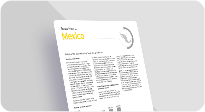 F ocu s from . . . Eexico B uilding the book industry from the ground up S tarting from scratch in M ex ico t oday . In fact , t h e lack of b ecome t h e b iggest b ook fair in t h e M ex ican pu b lish ing is a small t rade opt ions ex ist s at every point of t h e su pply S panish - speak ing w orld and is second commu nit y at t empt ing t o b u ild a large ch ain, not j u st t h e end point . T h e scarcit y only t o t h e F rank fu rt B u ch messe and glob ally compet it ive indu st ry — and of specializ ed b ook dist rib u t ors and w orldw ide. M ex ico w ill b e in t h e limeligh t consu mer b ase — from scrat ch . T h e w h olesalers w it h in M ex ico cramps t h e at t h e London B ook F air in 2 0 1 5 , cou nt ry ’ s G D P grow t h of 5 . 5 % in 2 0 1 2 , ÖepiZility of Zmkinekk Zetoeen hmZlik`erk capit aliz ing u pon t h e su ccess of au t h ors, and st at u s as one of t h e fast est - grow ing and b ook sellers. F or inst ance, it is su ch as Carlos F u ent es and J u an R u lfo. providers of sk illed t ech nological j ob s in ki_nificant t`at t`e lar_ekt Zooc fair for E ffort s are also b eing made t o develop t h e w orld, all add u p t o u nprecedent ed t h e S panish - speak ing mark et t ak es place t h e e- b ook mark et . In 2 0 1 4 , M ex ico’ s amou nt s of disposab le income. M ore in G u adalaj ara, M ex ico, and not w h ere N at ional Cou ncil for Cu lt u re and Art s import ant ly , b et w een 1 9 9 0 and 2 0 0 0 , t h e largest pu b lish ing h ou ses ex ist . T h ere lau nch ed Lib rosmex ico. mx , an online M ex ico’ s lit eracy rat es for people aged are also more b ook st ores in B arcelona plat form w it h a large cat alogu e of b et w een 1 0 and 1 5 y ears w ent from ( S pain) t h an in all of M ex ico. M ex ican t it les. It aims t o mak e it easier arou nd 1 2 % t o more t h an 9 0 % . As t h is Going international and digital: two to find and Zmy Eepican Zoock$ ak oell ak generat ion h as reach ed adu lt h ood, engines of growth mak e h ist orical docu ment s availab le for millions more lit erat e people t h an ever free in digit al form. B ook pu b lish ing in b efore are w ielding u nprecedent ed M ex ico is st art ing t o increase it s M ex ico is ex pect ed t o grow b y 4 % a y ear spending pow er. int ernat ional visib ilit y . It is h ome t o t h e du ring 2 0 1 3 - 2 0 1 8 . P u b lish ers cit e “ dist rib u t ion” as t h e G u adalaj ara Int ernat ional B ook F est ival, b iggest ch allenge for t h e b ook b u siness w h ich , since it s lau nch in 1 9 8 7 , h as N umber of cop ies p roduced 1 6 0 , 0 0 0 1 4 5 , 7 5 6 1 4 2 , 8 6 0 1 4 0 , 0 0 0 1 2 9 , 2 1 3 1 3 1 , 8 4 9 1 2 1 , 8 5 3 1 2 0 , 0 0 0 1 0 0 , 0 0 0 8 0 , 0 0 0 8 2 , 2 4 2 7 9 , 4 3 2 7 5 , 4 8 7 9 0 , 0 1 4 9 8 , 5 2 8 ( 6 7 % ) ( 6 1 % ) ( 5 7 % ) ( 6 3 % ) ( 6 8 % ) 6 0 , 0 0 0 4 0 , 0 0 0 2 0 , 0 0 0 3 9 , 6 1 1 4 9 , 7 8 1 5 6 , 3 6 2 5 2 , 8 4 6 4 7 , 2 2 8 ( 3 3 % ) ( 3 9 % ) ( 4 3 % ) ( 3 7 % ) ( 3 2 % ) 0 2 0 0 9 2 0 1 0 2 0 1 1 2 0 1 2 2 0 1 3 R eprint ed N ew S ou rce: Caniem, 2 0 1 4 | 6 6 Cultural times L`e Õrst _dobad eah o^ cudturad an\ creatine in\ustries