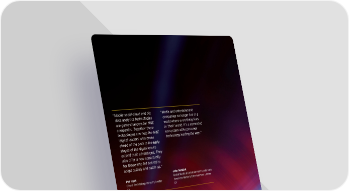 “ Mobile-social-cloud and big “ Media and entertainment data analytics technologies companies no longer lie in a are game-changers for M&E world where eerything lies companies. Together these in ‘their’ world. t’s a connected technologies can help the M&E ecosystem with consumer ‘digital leaders’ who broke technology leading the way.” ahead of the pack in the early stages of the digital era to etend their adantages. They also offer a new opportunity for those who fell behind to adapt uickly and catch up.” John Nendick Pat Hyek Global Media & Entertainment Leader and Global Technology Industry Leader Americas Media & Entertainment Leader EY EY rapidly evolving