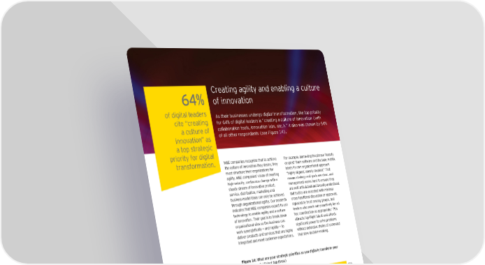 Creating agility and enabling a culture ›†ž o innovation o digital leaders As their businesses undergo digital transormation€ the top priority cite “creating or ™¥” o digital leaders is “creating a culture o innovation ˜‚ith a culture o collaboration tools€ innovation labs€ etcŠšŠ” It also ‚as chosen by „¥” innovation” as o all other respondents ˜see Figure ˆ¥šŠ a top strategic priority or digital transormationŠ M&E companies recogniœe that to achieve For eample€ borro‚ing the phrase “loosely the culture o innovation they desire€ they coupled” rom sot‚are architecture€ etfli must structure their organiœations or labels its o‚n organiœational approach agilityŠ M&E companies’ vision o meeting “highly aligned€ loosely coupledŠ” That highvelocity€ continuous change ‚ith a means strategy and goals are clear€ and steady stream o innovative product€ management ‚orŒs hard to ensure they service€ distribution€ marŒeting and are ‚ell articulated and broadly understoodŠ business model ideas can only be achieved ›ut tactics are eecuted ‚ith minimal through organiœational agilityŠ ƒur research crossunctional discussion or approvals€ indicates that M&E companies epect to use replaced by trust among groups€ and technology to enable agility and a culture leaders ‚ho reach out proactively or ad o innovationŠ Their goal is to breaŒ do‚n hoc coordination as appropriateЉ This organiœational silos so the business can attracts topflight talent and aords ‚orŒ synergistically — and rapidly — to significant po‚er to solve problems deliver products and services that are highly ‚ithout etensive chains o command integrated and meet customer epectationsŠ that slo‚ decisionmaŒingŠ Figure 14: „hat are your strategic priorities as you digitally transform your organiation… (Select top three) Creating a culture of innovation 64% 54% Listening to customers and 57% analyzing customer interactions 48% Building alliances with media, 51% entertainment and technology partners 30% Acquiring digital skills through 33% hiring, training or acquisitions 44% Undertaking competitive analysis 28% to understand the digital activities of other companies 29% Making venture capital investments in 25% digital companies and/or technologies 29% None, we are not undergoing 4% digital transformation 4% Digital leaders All others §Ÿ