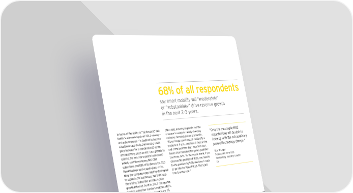 ›Ÿž of all respondents say smart mobility ‚ill “moderately” or “substantially” drive revenue gro‚th in the net ‡–‰ yearsŠ In terms o the ability to “ail or‚ard€” ast€ ƒther M&E industry segments eel the etfli’s acŒno‚ledged mid‡…ˆˆ misstep — pressure to adapt to rapidly changing “ nly the most agile M&E and agile response — is destined to become customer demands «ust as prooundlyŠ organiƒations will be able to a tetbooŒ case studyŠ Announcing a ™…” “It’s no longer good enough to identiy a keep up with the etraordinary price increase or a combined ¦¬¦ rental problem at “ aŠmŠ€ and have it fied at the pace of technology change.” and streaming video service ˜as a prelude to end o the business day€” says icŒ Earl€ splitting the t‚o into separate businessesš enior ¬ice £resident or games publisher uy €anger initially cost the company ž……€……… Electronic ArtsŠ “In the mobile ‚orld€ i you Deputy and ƒmericas subscribers and ž‰” o its share priceŠ CEƒ discover the problem at “’……€ you need to Technology “ndustry Leader ‹eed ‘astings uicŒly apologiœed€ on his fi the problem by “’…„ and have it ready EY blog• the company responded by electing not to go into the field at “’ˆ…Š That’s «ust to separate the businesses€ but it did Œeep ho‚ it ‚orŒs no‚Š” the pricingŠ ubscriber and share price gro‚th returnedŠ As o its ‡…ˆ‰ first uarter€ etfli’s subscriber numbers matched ‘›ƒ’s€ the most ‚atched cable net‚orŒ in the § € and its share price had more than uadrupled ˆ€‡ rom its ‡…ˆ‡ lo‚Š The ollo‚ing sections o this report ‚ill eplore insights rom our research about the role o technology in enabling agile M&E organiœationsŠ The sections are€ • ¦igital leaders orge the agility vision • Creating agility and enabling a culture o innovation • Competing or people and sŒills in a astchanging environment • Enabling technology tools or agile organiœations • An ƒutlooŒ section that includes our Agility Inde identiying those industry segments displaying the most€ and least€ agility ˜see Figure ‡‰€ page ‰‡š œ