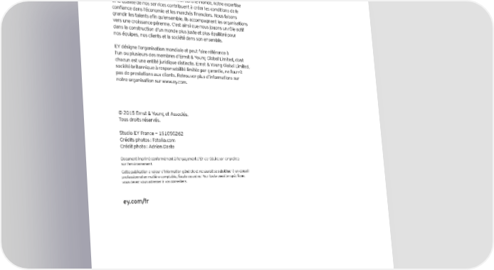 EY | Audit | Conseil | Fiscalité et Droit | Transactions EY est un des leaders mondiaux de l’audit, du conseil, de la fiscalité et du droit, des transactions. Partout dans le monde, notre expertise et la qualité de nos services contribuent à créer les conditions de la confiance dans l’économie et les marchés financiers. Nous faisons grandir les talents afin qu’ensemble, ils accompagnent les organisations vers une croissance pérenne. C’est ainsi que nous jouons un rôle actif dans la construction d’un monde plus juste et plus équilibré pour nos équipes, nos clients et la société dans son ensemble. EY désigne l’organisation mondiale et peut faire référence à l’un ou plusieurs des membres d’Ernst & Young Global Limited, dont chacun est une entité juridique distincte. Ernst & Young Global Limited, société britannique à responsabilité limitée par garantie, ne fournit pas de prestations aux clients. Retrouvez plus d’informations sur notre organisation sur www.ey.com. © 2015 Ernst & Young et Associés. Tous droits réservés. Studio EY France — 1510SG262 Crédits photos : Fotolia.com Crédit photo : Adrien Daste Document imprimé conformément à l’engagement d’EY de réduire son empreinte sur l’environnement. Cette publication a valeur d’information générale et ne saurait se substituer à un conseil professionnel en matière comptable, fiscale ou autre. Pour toute question spécifique, vous devez vous adresser à vos conseillers. ey.com/fr