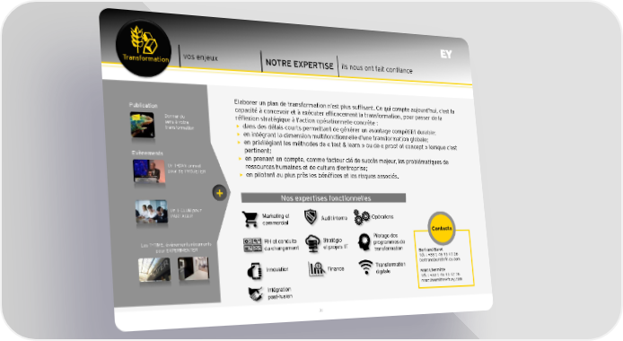 Transformation vos enjeux NOTRE EXPERTISE ils nous ont fait confiance Elaborer un plan de transformation n’est plus suffisant. Ce qui compte aujourd’hui, c’est la Publication capacité à concevoir et à exécuter efficacement la transformation, pour passer de la Donner du réflexion stratégique à l’action opérationnelle concrète : sens à votre dans des délais courts permettant de générer un avantage compétitif durable; transformation en intégrant la dimension multifonctionnelle d’une transformation globale; en privilégiant les méthodes de « test & learn » ou de « proof of concept » lorsque c’est Evènements pertinent; en prenant en compte, comme facteur clé de succès majeur, les problématiques de Un T–DAY annuel ressources humaines et de culture d’entreprise; pour SE PROJETER en pilotant au plus près les bénéfices et les risques associés. + Nos expertises fonctionnelles Un T-CLUB pour PARTAGER Marketing et Audit interne Opérations commercial Contacts RH et conduite Stratégie Pilotage des Les T-TIME, événements récurrents programmes de pour EXPERIMENTER du changement et projets IT transformation Bertrand Baret Tél. : +33 1 46 93 47 26 Innovation Transformation [email protected] Finance digitale Marc Lhermitte Tél. : +33 1 46 93 72 76 Intégration [email protected] post-fusion 31