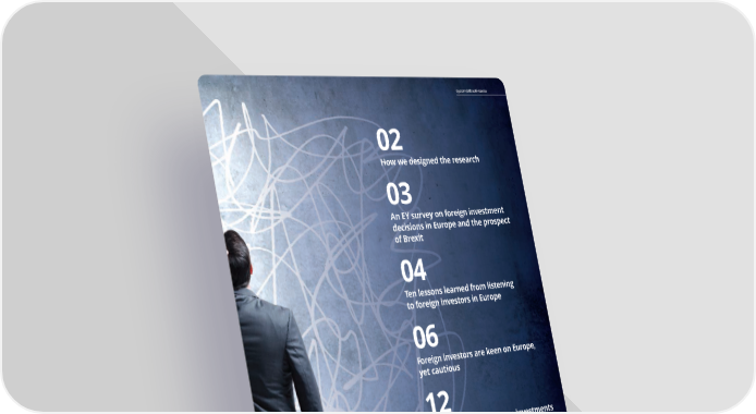 ey.com/attractiveness 02 How we designed the research 03 An EY survey on foreign investment decisions in Europe and the prospect of Brexit 04 Ten lessons learned from listening to foreign investors in Europe 06 Foreign investors are keen on Europe, yet cautious 12 A rethink of pan-European investments and activities is looming 19 Foreign investors in Europe are focused on managing the present — for now 24 A longer-term agenda for businesses and governments in Europe EY’s European attractiveness survey January 2017 1