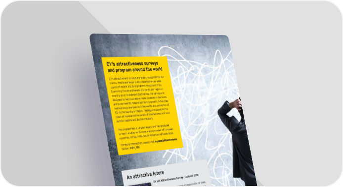 EY’s attractiveness surveys and program around the world EY’s attractiveness surveys are widely recognized by our clients, media and major public stakeholders as a key source of insight into foreign direct investment (FDI). Examining the attractiveness of a particular region or country as an investment destination, the surveys are designed to help businesses make investment decisions and governments remove barriers to growth. A two-step methodology analyzes both the reality and perception of FDI in the country or region. Findings are based on the views of representative panels of international and local opinion leaders and decision-makers. The program has a 16-year legacy and has produced in-depth studies for Europe, a large number of European countries, Africa, India, South America and Kazakhstan. For more information, please visit: ey.com/attractiveness Twitter: @EY_FDI An attractive future EY UK Attractiveness Survey — Autumn 2016 An attractive Our long history of sponsorship of research into UK trade, future including foreign direct investment (FDI), stems from our EY’s UK Attractiveness Survey, Autumn 2016 Executive summary desire to encourage an open dialogue between business leaders, investors and policy makers on how to maximise the UK’s economic performance. FDI has been an important source of capability for the UK in recent years especially as investment as a share of gross domestic product (GDP) has lagged the UK’s developed country peers. Our 2016 UK Attractiveness Survey published in May, confi rmed another year of strong performance in attracting FDI to the UK. It did however also identify an increased level of uncertainty about the future attractiveness of the UK. We have updated our investor perceptions survey in the Autumn to compare the mood with that in the Spring 2016. The results of this work together with a detailed analysis of FDI in Europe over the last decade provide the basis for the proposals set out in this report. For more information, please visit ey.com/ukas