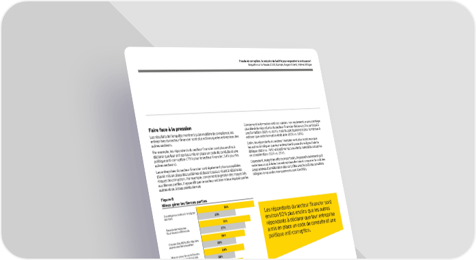 11 Faire face à la pression Les résultats de l’enquête montrent qu’en matière de compliance, les entreprises du secteur financier sont plus actives que les entreprises des autres secteurs. Par exemple, les répondants du secteur financier sont plus enclins à déclarer que leur entreprise a mis en place un code de conduite et une politique anti-corruption (79 % pour le secteur financier, 54 % pour les autres secteurs). Les entreprises du secteur financier sont également plus susceptibles d’avoir mis en place des systèmes et des processus visant à réduire les risques de corruption. Par exemple, concernant la gestion des risques liés aux tierces parties, il apparaît que ce secteur est bien mieux équipé que les autres et ce, à tous points de vue. Figure 8 Mieux gérer les tierces parties Services financiers Autres secteurs Base de données des fournisseurs référencés Due diligence relative à l’intégrité des tiers Appel à des prestataires externes pour effectuer les contrôles nécessaires Vérification des détenteurs du capital de la tierce partie Mise en place de contrôles des tierces parties basés sur des technologies/logiciels Clauses d’audit/Audits réguliers auprès des tierces parties 31 % 27 % 35 % 23 % 21 % 14 % 22 % 15 % 24 % 18 % 26 % 20 % Q : En ce qui concerne les tierces parties auxquelles votre unité fait appel, quels systèmes ou processus avez-vous mis en place pour gérer et contrôler les relations avec celles-ci ? Base : Services financiers (520) ; Autres secteurs (3 280) Concernant la formation anti-corruption, non seulement un pourcentage plus élevé de répondants du secteur financier déclare qu’il a participé à une formation (83 % vs. 60 %), mais ils sont également plus nombreux à estimer que cette formation était utile (80 % vs. 68 %). Enfin, les répondants du secteur financier sont plus nombreux que les autres à indiquer que leur entreprise dispose d’une ligne d’alerte éthique (88 % vs. 74 %) et à estimer qu’une alerte remontée sera prise en considération (53 % vs. 29 %). Cependant, malgré les efforts importants, il apparaît clairement qu’il reste beaucoup à faire. Les entreprises devraient comparer le coût des programmes d’amélioration des contrôles avec le coût des sanctions infligées lorsque des manquements sont identifiés. Les répondants du secteur financier sont environ 50 % plus enclins que les autres répondants à déclarer que leur entreprise a mis en place un code de conduite et une politique anti-corruption.