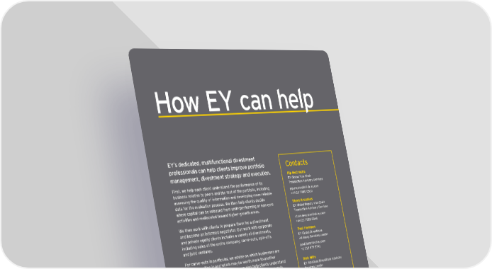 How EY can help EY’s dedicated, multifunctional divestment professionals can help clients improve portfolio Contacts management, divestment strategy and execution. Pip McCrostie First, we help each client understand the performance of its EY Global Vice Chair Transaction Advisory Services business relative to peers and the rest of the portfolio, including [email protected] assessing the quality of information and developing more reliable +44 20 7980 0500 data for the evaluation process. We then help clients decide where capital can be released from underperforming or non-core Steve Krouskos activities and reallocated toward higher-growth areas. EY Global Deputy Vice Chair Transaction Advisory Services We then work with clients to prepare them for a divestment [email protected] and become an informed negotiator. Our work with corporate +44 20 7980 0346 and private equity clients includes a variety of divestments, Paul Hammes including sales of the entire company, carve-outs, spin-offs EY Global Divestiture and joint ventures. Advisory Services Leader For carve-outs in particular, we advise on which businesses are [email protected] worth investing in and which may be worth more to another +1 312 879 3741 owner. Our sector-focused teams can also help clients understand Rich Mills the effect a divestment could have on the remaining company’s EY Americas Divestiture Advisory growth, brand and stakeholders. Furthermore, we can help Services Leader maximize transaction value by guiding you through preparation [email protected] and execution and removing any potential bumps in the road before +1 404 817 4397 buyers get involved. For example, we can create a compelling value Martin Hurst story by analyzing the growth opportunity, assessing underlying EY Europe, Middle East, India and Africa trends, and identifying hidden value in earnings, corporate Divestiture Advisory Services Leader allocations, real estate, working capital, human resources, IT, [email protected] operations and tax. +49 6196 996 27365 Finally, we assist with negotiations, Day One readiness and helping Stephen Lomas your company manage its remaining cost structure and focus on EY Asia-Pacific Divestiture future growth. Advisory Services Leader [email protected] +61 3 9288 8441 Peter Wesp Japan Divestiture Advisory Services Leader [email protected] +81 3 458 26400 23