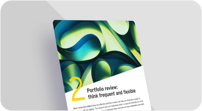 Portfolio review: think frequent and flexible Most companies believe they run effective portfolio reviews, but they are often slow to pivot as market conditions change. The value of non-core businesses under a corporate umbrella can erode when there is no divestment imperative. In extreme cases, inaction can leave companies vulnerable to shareholder activism or hostile bids. In our survey, 56% of corporate respondents say shortcomings What do you consider to be the main challenges in the portfolio review process resulted in failure to achieve associated with portfolio reviews? (Select top three.) intended divestment targets. There are many challenges — not least getting access to accurate, comprehensive data, and Access to accurate, comprehensive data communication shortcomings between the board or strategy 49% team and the M&A team. And nearly half of companies (44%) Better communication between board/strategy team and M&A team say one of their most significant challenges is making the 44% portfolio review a strategic imperative. Dedicating specialized resources to the process PE owners, on the other hand, tend to place their investee 44% businesses under constant review, such that they can use their Making the portfolio review process a truly strategic imperative influence to change strategic direction quickly. PE firms also 44% use aggressive industry benchmarks and advanced analytics to Consistently applying more sophisticated analytics tools to the process assess capital performance. This means they are acutely aware 42% of when and how to grow, fix or exit a business, and they Overcoming emotional attachments to assets/conflicts of interest largely avoid crisis management and fire sales. 21% Lack of leadership support 53% 18% say they have held on to assets too long when they should have divested them 10