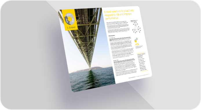 There’s | 15 3. Embed Embed solutions to proactively respond to risk and improve performance They execute their risk response plans more effectively and are better enabled to prevent, adapt and anticipate risk that would otherwise impact their business strategy. It is not about adopting one-off solutions, it is about embedding sustainable solutions that enable an organization to remain successful. Organizations that think strategically about risk and have optimized their functions and processes are able to more easily embed and sustain solutions across the three lines of defense. These solutions are based on the organization’s risk response plans and align to the objectives of each risk category — strategic, preventable and external. Preventable risks Keep it simple: embed solutions that seek to prevent or eliminate these risks all together. Design risk and control frameworks that optimally prevent risks from arising, and can be efficiently monitored and tested to deter or detect risks if they arise. Organizations implementing new financial platforms should design application security that address compliance requirements and align to the businesses’ operating model; eliminating potential risks resulting from segregation of duties conflicts or excessive access at go-live. Leveraging GRC technology, organizations can implement additional control measures to detect and deter potential segregation of duties conflicts from arising. In this case, the second and third lines of defense play a major role in both ensuring that compliance requirements are adequately addressed and assessing the design and operating effectiveness of control measures. Leading organizations focus on optimizing their internal control frameworks to eliminate duplication and automate controls. Similarly, organizations adopt continuous process monitoring solutions to further enhance and automate controls as well as improve the second and third line’s ability to monitor the overall internal control environment. In our GRC survey, 75% of respondents identified usage of continuous monitoring, ranging from fraud detection, transaction monitoring and performance monitoring. As a result, these types of solutions better enable all parties within the organization to focus their efforts on managing the strategic and external risks. Strategic risks Balance risk mitigation with risk taking: embed solutions that reduce potential risks to your business strategy and enable you to adapt should those risks arise. Organizations willingly accept some degree of risk in order to drive business performance; for example, a financial services organization offering new products needs to accept a defined level of risk associated with extending its products and services to potential high-risk customers. Organizations balance and manage this type of risk through solutions such as risk modeling and analytics. This enables them to monitor the risk exposure to the organization real-time and adjust their business strategy accordingly — in this case, their criteria for accepting customers — capitalizing on the customers they do want to target. The second and third lines of defense facilitate and monitor the effectiveness of the models and analytics, as well as challenge the inputs and underlying assumptions. As new products are offered, the criterion by which customers are evaluated is continuously updated, reducing the risk to the organization while reaping the expected benefits. Audit and compliance management, security and process controls and enterprise risk management capabilities are viewed as the most important GRC technology capabilities today. Risk responses Organizations that embed solutions as a core aspect of their business can proactively respond to risk and drive performance. 49% of respondents utilize one or more GRC technologies to enable risk management activities. Categories of risks: strategic, preventable and external External risks Preventable risks Strategic risks