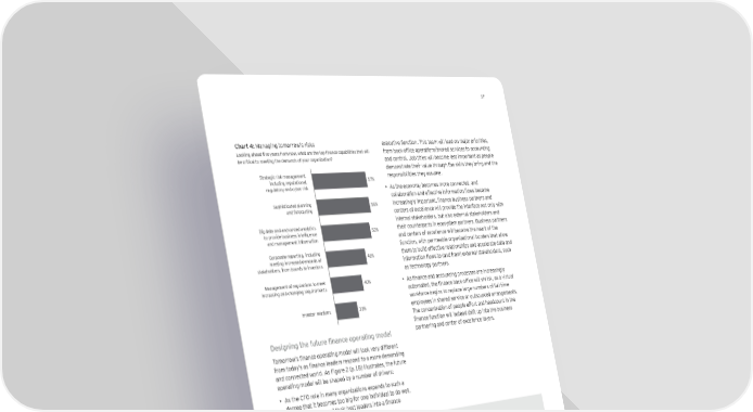 17 ;`Yjl,2Managing tomorrow’s risks executive function. This team will lead on major priorities, Looking ahead five years from now, what are the top finance capabilities that will from back-office operations/shared services to accounting be critical to meeting the demands of your organization? and control. Job titles will become less important as people demonstrate their value through the skills they bring and the Strategic risk management, responsibilities they assume. including reputational, 57% regulatory and cyber risk • As the economy becomes more connected, and collaboration and effective information flows become Sophisticated planning 56% increasingly important, finance business partners and and forecasting centers of excellence will provide the interface not only with Big data and andvanced analytics internal stakeholders, but also external stakeholders and to provide business intelligence 53% their counterparts in ecosystem partners. Business partners and management information and centers of excellence will become the heart of the function, with permeable organizational borders that allow Corporate reporting, including them to build effective relationships and accelerate data and meeting increased demands of 46% information flows to (and from) external stakeholders, such stakeholders, from boards to investors as technology partners. Management of regulations to meet 40% • As finance and accounting processes are increasingly increasing and changing requirements automated, the finance back-office will shrink, as a virtual workforce begins to replace large numbers of full-time Investor relations 33% employees in shared service or outsourced arrangements. The concentration of people effort and headcount in the finance function will instead shift up into the business <]ka_faf_l`]^mlmj]^afYf[]gh]jYlaf_eg\]d partnering and center of excellence layers. Tomorrow’s finance operating model will look very different from today’s as finance leaders respond to a more demanding and connected world. As Figure 2 (p.18) illustrates, the future operating model will be shaped by a number of drivers: • As the CFO role in many organizations expands to such a degree that it becomes too big for one individual to do well, CFOs will need to pull their best leaders into a finance ;]fl]jkg^]p[]dd]f[]2Yf]ngdnaf_[gf[]hl In many organizations, finance centers of excellence emerged as a means of streamlining and centralizing expertise for the use of stakeholders across the business, particularly in areas of specialism, such as analytics or tax. However, as the demands on finance functions and the tools available to them change, finance leaders should be open-minded about revisiting how to use these centers to their best advantage. For example, analytics centers of excellence — rather than being located at the organization’s head office — might be more strategically located with proximity to the best skills, such as near an academic or university hub where there is the best chance of finding graduates with analytics education and experience. ey.com/dnaofthecfo