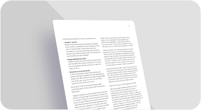 13 In the future finance function, CFOs will use blockchains to: farmer from the Chinese vendor, transfers ownership of the • Increase IT security cotton to the Chinese textile mill and automatically pays Blockchains are considered by commentators to be tamper- and files the documentation for customs and duty with the proof, providing unprecedented protection against fraud and Chinese Government. “Smart contracts automate this process hacking. There have been incidents where users have that, today, has a lot of manual steps and paperwork involved.” entrusted their private keys to exchange operators and the However, blockchain is still a new technology that still requires operators have had their security broken, but the blockchain development in areas such as contract dispute management. security itself has not been breached. “What has yet to be fully designed is a mechanism for handling • Manage extended value chains disputes in smart contracts, a topic that I believe will emerge Instead of having to reconcile the internal system of record as an important area of blockchain research in the future” says with information from suppliers and partners, CFOs will be Paul Brody. “Ultimately, I expect to see hybrid contracts that able to pull data from multiple blockchains to create their blend the automation of smart contracts with the provisions system of record. for dispute resolution that exist in traditional agreements.” • Streamline contract enforcement Blockchain technology is likely to play an important role in the A smart contract feature means that the delivery and finance function in coming years. CFOs should be anticipating payment relating to a transaction can be integrated into the how they are going to build the relevant competencies and skill contract itself. With blockchains, the ledger is programmable sets. They also need to start discussing the future of their and contains logic, so you can have a rule that makes a system of record, given that organizations could move from payment on the completion of a service. working with a single, monolithic system of record inside the Paul Brody, EY Americas Technology Strategy Leader, enterprise to working with many different systems. outlines how smart contracts could transform international F]ol][`fgdg_q$Zmlgd\[`Ydd]f_]kj]eYaf trade, saying: Before making large investments and diving into major “Imagine a container ship, carrying cotton from an Australian overhauls, CFOs will of course want to build a clear farmer to a Chinese vendor for processing into clothing, with understanding of which new technologies will be most an Internet-of-Things (IoT) device tracking the ship as it travels beneficial to their finance function, and they will need to be across the ocean. The farmer has a contract with the Chinese highly selective. Importantly, CFOs must also remember that vendor that states that the farmer gets paid based on the the success of any technology greatly depends on the skills of weight of the cotton adjusted for its humidity level when it the people using it. In our research, CFOs cited “staff capacity enters the port of Hong Kong — you could actually write that to adapt to change” as the main barrier to adopting new into the blockchain software code as a smart contract. technologies. Effective change management — including “When the GPS of the container ship enters Hong Kong harbor, transparency about the rationale, and continuous and the digitally connected weighing and humidity sensors communication — will be critical for technology assess the cotton, then those two pieces of data combine and transformations to be a success. trigger the smart contract. That then pays the Australian ey.com/dnaofthecfo