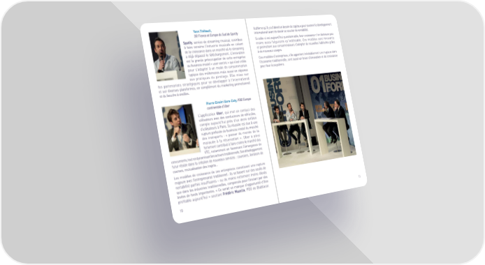 Yann Thébault, ™l aŠfirme …u’il ‰ a d’abord un besoin de capitaux pour soutenir le développement DG France et Europe du Sud de Spotify international avant de devoir se soucier de rentabilité€ Spotify, service de streaming musical, contribue i celle‘ci est au•ourd’hui …uestionnable, leur croissance n’en demeure pas à Šaire renaitre l’industrie musicale en créant moins aussi Šulgurante …u’indéniable€ ‚es modèles sont innovants de la croissance dans un marché où le streaming et permettent aux consommateurs d’adopter de nouvelles habitudes grâce a dé•à dépassé le téléchargement€ ˆ’innovation à de nouveaux usages€ est la grande préoccupation de cette entreprise ‚es modèles d’entreprises, s’ils apportent inévitablement une rupture dans au business model « user centric » …ui s’est créée l’économie traditionnelle, sont aussi un levier d’innovation et de croissance pour s’adapter à un mode de consommation pour leur écos‰stème€ t‰pi…ue des mélomanes mais aussi en réponse aux prati…ues du piratage€ ”lle mise sur les partenariats stratégi…ues pour se développer à l’international et sur diverses plateŠormes, en complément du maržeting promotionnel et du bouche à oreilles€ Pierre-Dimitri Gore-Coty, PDG Europe continentale d’Uber ˆ’application Uber, …ui met en contact des utilisateurs avec des conducteurs de véhicules, compte au•ourd’hui près d’un demi‘million d’utilisateurs à Paris€ a réussite est due à une rupture proŠonde du business model du marché des transports Ž « passer du monde de la maraude à la réservation »€ ¥ber a ainsi Šortement contribué à Šaire croitre le marché des †T‚, notamment en Šavorisant l’émergence de concurrents, tout en d‰namisant les acteurs traditionnels€ on développement Šutur réside dans la création de nouveaux services Ž coursiers, livraison de courses, mutualisation des tra•ets… ˆes modèles de croissance de ces entreprises constituent une rupture ma•eure avec l’entreprenariat traditionnel Ž ils se basent sur des seuils de rentabilité parŠois insuŠŠisants – ou du moins nettement moins élevés …ue dans les industries traditionnelles, compensés pour l’instant par des levées de Šonds importantes€ « ‚e serait un man…ue d’opportunité d’être proŠitable au•ourd’hui » soutient rédéric Maella, PD® de lablacar€