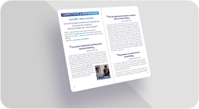 COMPETITIVITÉ & PERFORMANCE Cercle#03 : Objets connectés Tous les objets pourront devenir connectés Comment les objets connectés vont-ils transformer grâce au réseau Sigfox les process des entreprises ? Ludovic Le Moan, Sigfox Comment s’adapter pour rester compétitif ? i on parle des ob•ets connectés depuis plus de …uin‡e ans, leur généralisation était •us…u’à récemment limitée à cause de leur coût, de leur ”¸P”T Ž Ludovic LeMoan, Président Directeur Général, Sigfox complexité d’utilisation et de leur Šaible autonomie€ ˆ’entreprise igŠox a ”T Pš‚T™‚” Ž Serge Darrieumerlou, Directeur Général, Somfy France déplo‰é un réseau bas débit en rance pour „M ³avant un déploiement mondial´ pour permettre de connecter des composants …ui auront une PÉ™D”NT D” ÉšN‚” Ž Jérôme Tolot, Administrateur Directeur Général, consommation d’énergie très Šaible, un coût inŠérieur à un euro, une petite GDF Suez taille et une capacité à se connecter instantanément à leur réseau€ ‚ette šN™MÉ Pš Ž Anthony Morel, BFM BUSINESS nouvelle technologie va permettre de connecter de nombreux ob•ets dans diŠŠérents secteurs et igŠox est dé•à en discussion avec plusieurs entreprises en rance pour connecter « leurs » ob•ets€ ‚ette nouvelle technologie va permettre de connecter de nombreux ob•ets dans diŠŠérents Les acteurs traditionnels sont bousculés, secteurs et igŠox est dé•à en discussion avec plusieurs entreprises en mais pas menacés rance pour connecter « leurs » ob•ets€ ½iloutou a adopté ces ob•ets connectés pour protéger certains de ses é…uipements de chantier les plus Jérôme Tolot, GDF Suez onéreux, envisageant même de connecter ses –„ machines€ ‚ela leur ˆe dernier ‚” ³‚onsumer ”lectronic ho²´ de ˆas †egas a montré …ue la permettra non seulement de lutter contre le vol, mais également d’obtenir rance est à la pointe en matière d’ob•ets connectés et …u’elle ne man…ue des données sur leur usage€ pas d’idées à développer€ Tous les secteurs sont concernés par ces ob•ets …ui s’immiscent désormais dans tous les espaces de notre vie, …u’elle soit Révolutionner la manière de faire proŠessionnelle ou personnelle€ ™ls pourraient même menacer les acteurs traditionnels en termes de compétitivité Ž tout l’en•eu pour eux consiste dès du marketing lors à voir en …uoi ces ob•ets connectés peuvent changer la répartition de Serge Darrieumerlou, Somfy valeur, et surtout en créer une supplémentaire€ ˆes entreprises sont en plein …uestionnement omЉ, leader des ob•ets connectés dans l’habitat, aspire à concrétiser concernant l’adaptation de leur processus et le concept de « smart home » en créant des réseaux d’é…uipements de leur organisation pour saisir cette connectés€ ¥n tel réseau opérationnel contribuerait Šortement à améliorer opportunité liée au traitement des données le service rendu au client, aidant de ce Šait à le fidéliser tout en Šavorisant remontées par ces ob•ets connectés€ l’émergence de nouveaux services€ ˆes possibilités d’utilisation des données collectées auprès des consommateurs sont également immenses€ ˆes ob•ets connectés permettent de cerner l’usage réel du produit et de comprendre les habitudes –± –ª