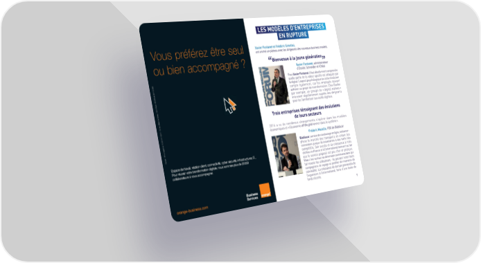 Demande du 20-01 ¤ SP PPR ¤ 148.5 x 210 mm ¤ Visuel:seul ou bien accompagne (body client) ¤ Parution= ¤ Remise le=22/janv./2015 PAC • BAT LES MODÈLES D’ENTREPRISES EN RUPTURE Vous préférez être seul Xavier Fontanet et Frédéric Simottel, ont animé un plateau avec les dirigeants des nouveaux business models. ou bien accompagné ? Bienvenue à la jeune génération Xavier Fontanet, administrateur d’Essilor, Schneider et l’Oréal Pour Xavier Fontanet, il Šaut absolument comprendre …uelle partie de la valeur a•outée est atta…uée par le digital€ ˆ’aspect ps‰chologi…ue de cette révolution compte également, car les emplo‰és doivent adhérer au pro•et de transŠormation€ ‚he‡ ”ssilor par exemple, un groupe de « digital natives » s, 75015 Paris – RCS Paris 380 129 866 intervient régulièrement auprès des dirigeants e pour les Šamiliariser aux outils digitaux€ -de-Serr Trois entreprises témoignent des évolutions de leurs secteurs –ƒ a vu de nombreux changements s’opérer dans les modèles économi…ues et « l’économie off the grid rentrer dans le s‰stème »€ Fréderic Mazella, PDG de Blablacar Blablacar, service de covoiturage en ligne, métamor‘ Orange – SA au capital de 10 595 541 532 € – 78, rue Olivier phose le marché des transports en créant des connexions •us…ue‘là inexistantes à des tariŠs très Espace de travail, relation client, connectivité, cyber sécurité, infrastructures IT... compétitiŠs€ on succès et sa croissance à trois Pour réussir votre transformation digitale, nous sommes plus de 20 000 chiŠŠres en rance et à l’international tiennent au Šait collaborateurs à vous accompagner. …ue le service proposé est peu cher et prati…ue€ Mais c’est surtout sa dimension communautaire …ui Šait revenir les utilisateurs Ž ils peuvent noter leurs compagnons de vo‰age et profiter de moments de convivialité€ ˆa croissance de demain proviendra de l’expansion à l’international, Šorte d’une levée de Šonds récente€ ª orange-business.com ORAG_1501061_SEUL_OU_ACCOMPAGNE_CLIENT_148.5x210_Demande_du_20-01_SR.indd 1 22/01/2015 14:09