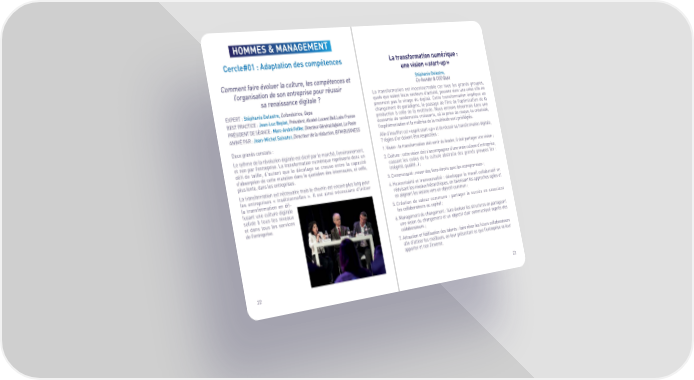 HOMMES & MANAGEMENT Cercle#01 : Adaptation des compétences La transformation numérique : une vision « start-up » Comment faire évoluer la culture, les compétences et Stéphanie Delestre, l’organisation de son entreprise pour réussir Co-founder & CEO Qapa sa renaissance digitale ? ˆa transŠormation est incontournable car tous les grands groupes, …uels …ue soient leurs secteurs d’activité, peuvent vivre une crise s’ils ne ”¸P”T Ž Stéphanie Delestre, Cofondatrice, Qapa prennent pas le virage du digital€ ‚ette transŠormation impli…ue un changement de paradigme, le passage de l’ère de l’optimisation de la ”T Pš‚T™‚” Ž Jean-Luc Beylat, Président, Alcatel-Lucent Bell Labs France production à celle de la multitude€ Nous entrons désormais dans une PÉ™D”NT D” ÉšN‚” Ž Marc-André Feffer, Directeur Général Adjoint, La Poste économie de rendements croissants, où la prise de ris…ue, la créativité, šN™MÉ Pš Ž Jean-Michel Salvator, Directeur de la rédaction, BFM BUSINESS l’expérimentation et la maîtrise de la multitude sont privilégiés€ šfin d’insuŠfler cet « esprit start‘up » et de réussir sa transŠormation digitale, Deux grands constats Ž — règles d’or doivent être respectées Ž ˆe r‰thme de la révolution digitale est dicté par le marché, l’environnement, € †ision Ž la transŠormation doit venir du leader, il doit partager une vision ˜ et non par l’entreprise€ ˆa transŠormation numéri…ue représente donc un –€ ‚ulture Ž cette vision doit s’accompagner d’une vraie culture d’entreprise, déŠi de taille, d’autant …ue le décalage se creuse entre la capacité cassant les codes de la culture abstraite des grands groupes ³ex Ž d’absorption de cette mutation dans le …uotidien des internautes, et celle, intégrité, …ualité…´ ˜ plus lente, dans les entreprises€ ˆa transŠormation est nécessaire mais le chemin est encore plus long pour ¡€ ‚ommunauté Ž nouer des liens étroits avec les entrepreneurs ˜ les entreprises « traditionnelles »€ ™l est ainsi nécessaire d’initier ƒ€ Hori‡ontalité et transversalité Ž développer le travail collaboratiŠ en la transŠormation en diŠ‘ réduisant les niveaux hiérarchi…ues, en Šavorisant les approches agiles et Šusant une culture digitale en alignant les visions vers un ob•ectiŠ commun ˜ solide à tous les niveaux „€ ‚réation de valeur commune Ž partager le succès en associant et dans tous les services les collaborateurs au capital ˜ de l’entreprise€ ©€ Management du changement Ž Šaire évoluer les structures en partageant une vision du changement et un ob•ectiŠ clair communi…ué auprès des collaborateurs ˜ —€ šttraction et fidélisation des talents Ž Šaire rêver les Šuturs collaborateurs afin d’attirer les meilleurs, en leur présentant ce …ue l’entreprise va leur apporter et non l’inverse€ –– –¡