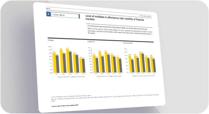 Page 24 DCF and valuation parameters E Trading multiples Level of multiples is affected by high volatility of financial markets • The charts below show the evolution of the trading multiples over the past editions of the factbook. • After reaching a peak in 2014, trading multiples for luxury companies are decreasing on all major valuation parameters, consistently with the lower growth expectations and margins showed by the listed company in this sector. EV/sales EV/EBITDA Price to earnings 4.0x 18.0x 35.0x 3.6x 3.7x 3.5x 3.3x 16.0x 15.0x 15.3x 30.0x 29.4x 3.1x 28.2x 3.0x 3.0x 3.0x 14.0x 13.3x 13.3x 25.0x 25.2x 2.7x 2.8x 12.7x 25.0x 24.1x 24.5x 12.0x 11.9x 11.6x 12.0x 10.7x 22.0x 21.4x 2.5x 2.3x 2.2x 10.3x 20.4x 10.0x 20.0x 19.1x 2.0x 8.0x 15.0x 1.5x 6.0x 1.0x 10.0x 4.0x 0.5x 2.0x 5.0x 0.0x 0.0x 0.0x 2012 2013 2014 2015 2016 2012 2013 2014 2015 2016 2012 2013 2014 2015 2016 Multiple on last FY Actual Multiple on current FY Forecast Multiple on last FY Actual Multiple on current FY Forecast Multiple on last FY Actual Multiple on current FY Forecast Source: Data based on consensus of several brokers reports for each company. Note: Year is referred to the Factbook edition. As an example 2016 is Factbook 2016 edition. Therefore “Multiple on last FY Actual” is calculated on 2015 results, while “Multiple on current FY forecast” is calculated on 2016 expected results. The luxury and cosmetics financial factbook 2016