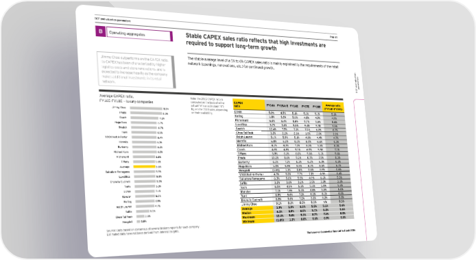 DCF and valuation parameters Ha_e )- B Operating aggregates Stable CAPEX sales ratio reflects that high investments are required to support long–term growth Jimmy Choo outperforms on the CAPEX ratio. The stable anerage lenel of a - to . ;9HEP sales ratio is mainlq explained bq the reimirements of the retail network (openings, renovations, etc.) for continued growth. Its CAPEX has been characterized by higher s logistics costs and store renovations, and is er aluationt expected to increase heavily as the company ame makes additional investments in its retail ar p network. DCF and v Average CAPEX ratio, Note: the 2015 CAPEX ratio is CAPEX Average ratio >Q).=Ç>Q)0= È lmpmjy cgepanies computed on the basis of either ratio FY14A FY15A/E FY16E FY17E FY18E (FY16E–FY18E) actual (“A“) or estimated (“E“) Jimmy Choo 8.5% figmres for *()- sales, depending LVMH -&( ,&1 -&) -&) -&) -&) Prada 8.3% on their availability. Kering )&0 -&- -&( ,&0 ,&1 ,&1 Coach 7.2% Richemont .&. .&, -&0 -&/ -&0 -&0 Hugo Boss 6.7% Luxottica +&/ +&. -&0 -&, -&+ -&- Swatch 6.7% Swatch )*&, /&- /&) /&( .&( .&/ Tumi 6.5% ;`go Lai >ggc +&* *&* *&) )&1 *&( *&( YOOX Net-A-Porter 6.4% Ralph Lauren -&) -&1 -&) ,&0 ,&, ,&/ Hermès 6.3% Hermès .&0 .&* .&* .&( .&. .&+ Burberry 6.3% Michael Kors 0&) 0&+ /&+ .&( -&- .&+ Michael Kors Coach ,&. ,&0 1&+ .&1 -&- /&* 6.3% Li^^any -&0 .&) .&( -&0 -&) -&. Richemont 5.8% Prada )(&* 0&. 1&* 0&/ /&( 0&+ Tiffany 5.6% :mjZejjy .&) /&) .&+ .&* .&+ .&+ Average 5.6% Hugo Boss -&( .&1 .&1 .&/ .&- .&/ Salvatore Ferragamo 5.5% Hengdeli )&.! )&) (&0 (&0 (&1 (&0 Luxottica 5.5% YOOX Net–A–Porter ,&+ -&( /&/ /&) ,&- .&, L'Oréal21.9% Brunello Cucinelli 5.5% Salvatore Ferragamo .&+ -&. -&- ,&1 .&) -&- Tod's 5.3% Kafilg +&* +&. +&* +&- +&+ +&+ Estée Lauder20.2% Tod's .&- ,&- -&+ -&- -&( -&+ Natura19.4% LVMH 5.1% Moncler /&) /&- -&+ ,&0 -&( -&( Moncler 5.0% Tumi .&1 -&. /&) .&+ .&) .&- Coty19.0% Kering 4.9% Average18.0% Brunello Cucinelli 0&0 1&. /&* -&) ,&* -&- Ralph Lauren 4.7% Bieey ;`gg 1&) 0&) 0&- 0&- n/a 0&- L'Occitane18.0% Kafilg 3.3% Average 5.9% 5.9% 6.0% 5.5% 5.1% 5.6% Beiersdorf17.6% Chow Tai Fook 2.0% Median 6.1% 5.9% 6.0% 5.7% 5.2% 5.6% Shiseido10.3% Hengdeli 0.8% Maximum 12.4% 9.6% 9.3% 8.7% 7.0% 8.5% Minimum (1.6%) 1.1% 0.8% 0.8% 0.9% 0.8% Source: Data based on consensus of several brokers reports for each company. Estimated data have not been derived from internal insights. The luxury and cosmetics financial factbook 2016