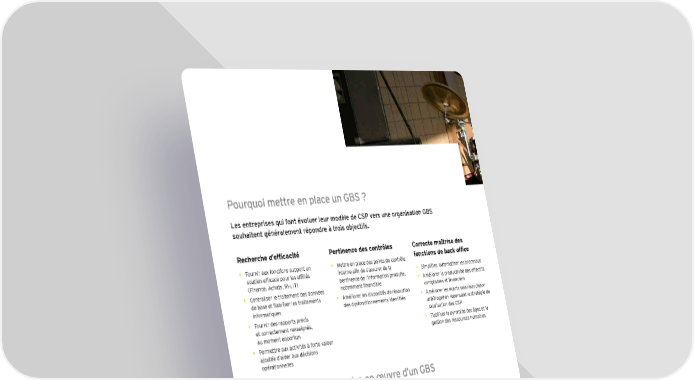 Pourquoi mettre en place un GBS ? Les entreprises qui font évoluer leur modèle de CSP vers une organisation GBS souhaitent généralement répondre à trois objectifs. Recherche d’efficacité Pertinence des contrôles Correcte maîtrise des • Fournir aux fonctions support un • Mettre en place des points de contrôle fonctions de back office soutien efficace pour les affiliés interne afin de s’assurer de la • Simplifier, automatiser les processus (Finance, Achats, RH, IT) pertinence de l’information produite, • Améliorer la productivité des effectifs • Centraliser le traitement des données notamment financière comptables et financiers de base et fiabiliser les traitements • Améliorer les dispositifs de résolution • Améliorer les écarts salariaux (labor informatiques des dysfonctionnements identifiés arbitrage) en repensant la stratégie de • Fournir des rapports précis localisation des CSP et correctement renseignés, • Fiabiliser la pyramide des âges et la au moment opportun gestion des ressources humaines • Permettre aux activités à forte valeur ajoutée d’aider aux décisions opérationnelles Le cycle de vie de la mise en œuvre d’un GBS Qu’il s’agisse d’un CSP monofonctionnel ou multifonctionnel (GBS), de scope régional ou mondial, l’implémentation d’une organisation CSP suivra la même courbe en 4 temps : re CSP dits de “2e 1 Définition de la stratégie CSP dits de “1 génération” génération” 2 Migration 3 Stabilisation 4 4 Optimisation 1 Minimiser la période 3 de stabilisation e Les dernières tendances en matière de déploiement de CSP de deuxième ormanc génération laissent clairement entrevoir Réduire une migration des régions vers une les points centralisation au niveau mondial, allant de au de perf bloquants pair avec un élargissement des périmètres, e Niv une meilleure gouvernance, une plus grande automatisation et un processus 2 complet « de A à Z ». Temps Source : EY research 22 | Nouvelle génération de back office - Transformer pour simplifier