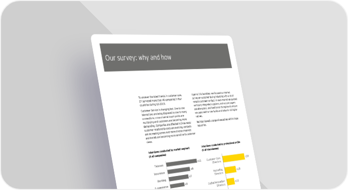 Our survey: why and how To uncover the latest trends in customer care, Against this backdrop, we focused our market EY surveyed more than 40 companies in four survey on customer-facing industries with a lot of countries during Q3 2015. remote customer contact. In each market we quizzed Customer Service is changing fast. One-to-one vertically-integrated suppliers, online pure players interactions are being displaced by one-to-many and disrupters, and traditional champions to ensure connections; cross-channel touch-points are we captured the new habits and behavior of digital multiplying and customers are becoming more natives. demanding. Companies are affected in three ways: We interviewed a range of executives within these customer relationship costs are evolving, contacts industries. are increasing across ever more diverse channels and brands are becoming more sensitive to customer views. Interv iew s conducted b y market segment Interviews conducted by professional profile (# of comp anies) (# of interv iew ees) Telecom c1 1 Customer Care c30 Directors Insurance c8 Banking c7 Marketing c15 Directors E-commerce c5 Digital/Innovation c10 Utilities c4 Directors Retail c3 Change and Transformation c5 Media c2 Directors CEX Experts c5 14 O ff- site Customer R elationship S tudy | J anuary 2 016