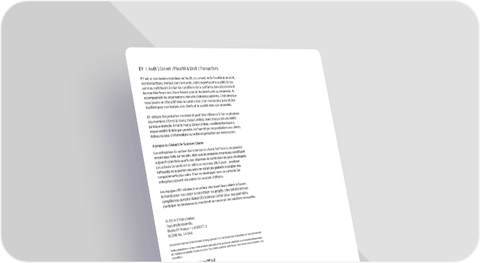 EY | Audit | Conseil | Fiscalité & Droit | Transactions EY est un des leaders mondiaux de l’audit, du conseil, de la fiscalité et du droit, des transactions. Partout dans le monde, notre expertise et la qualité de nos services contribuent à créer les conditions de la confiance dans l’économie et les marchés financiers. Nous faisons grandir les talents afin qu’ensemble, ils accompagnent les organisations vers une croissance pérenne. C’est ainsi que nous jouons un rôle actif dans la construction d’un monde plus juste et plus équilibré pour nos équipes, nos clients et la société dans son ensemble. EY désigne l’organisation mondiale et peut faire référence à l’un ou plusieurs des membres d’Ernst & Young Global Limited, dont chacun est une entité juridique distincte. Ernst & Young Global Limited, société britannique à responsabilité limitée par garantie, ne fournit pas de prestations aux clients. Retrouvez plus d’informations sur notre organisation sur www.ey.com. A propos du Global Life Sciences Center Les entreprises du secteur des sciences du vivant font face à une pression encore plus forte sur les prix, alors que les maladies chroniques constituent aujourd’hui les trois quarts des dépenses de santé dans les pays développés. Les acteurs de santé ont en outre un nouveau rôle à jouer : améliorer l’efficacité de la gestion des soins en aidant les patients à adopter des comportements plus sains. Pour se développer dans ce contexte, les entreprises doivent réinventer leur modèle d’affaires. Les équipes d’EY dédiées à ce secteur réunissent leurs talents à travers le monde pour vous aider à concrétiser vos projets. Elles bénéficient des compétences de notre Global Life Sciences Center pour vous permettre d’anticiper les tendances du marché et de concevoir des solutions innovantes. © 2014 EYGM Limited. Tous droits réservés. Studio EY France — 1406SG711 SCORE No. 14-046 Document imprimé conformément à l’engagement d’EY de réduire son empreinte sur l’environnement. Cette publication a valeur d’information générale et ne saurait se substituer à un conseil professionnel en matière comptable, fiscale ou autre. Pour toute question spécifique, vous devez vous adresser à vos conseillers. ey.com/progressions2014 Retrouvez le rapport dans son intégralité sur notre site ey.com/lifesciences ou contactez-nous sur notre blog lifesciencesblog.com. Suivez-nous sur Twitter @EY_LifeSciences.