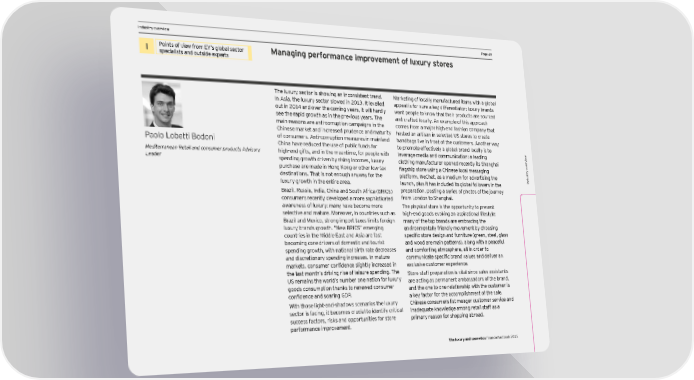 DCF and vIndustry oaluation pverview arameters PPage 49age 49 I Points of view from EY’s global sector Managing performance improvement of luxury stores specialists and outside experts The luxury sector is showing an inconsistent trend. Marketing of locally manufactured items with a global In Asia, the luxury sector slowed in 2013. It levelled appeal is for sure a key differentiator: luxury brands out in 2014 and over the coming years, it will hardly want people to know that their products are sourced see the rapid growth as in the previous years. The and crafted locally. An example of this approach main reasons are anti-corruption campaigns in the comes from a major high end fashion company that Chinese market and increased prudence and maturity hosted an artisan in selected US stores to create Paolo Lobetti Bodoni of consumers. Anti-corruption measures in mainland handbags live in front of the customers. Another way China have reduced the use of public funds for to promote effectively a global brand locally is to Mediterranean Retail and consumer products Advisory high-end gifts, and in the meantime, for people with leverage media and communication: a leading w Leader spending growth driven by rising incomes, luxury clothing manufacturer opened recently its Shanghai ervie v purchase are made in Hong Kong or other low-tax flagship store using a Chinese local messaging try o destinations. That is not enough anyway for the platform, WeChat, as a medium for advertising the Indus luxury growth in the entire area. launch, plus it has included its global followers in the Brazil, Russia, India, China and South Africa (BRICS) preparation, posting a series of photos of the journey consumers recently developed a more sophisticated from London to Shanghai. awareness of luxury: many have become more The physical store is the opportunity to present selective and mature. Moreover, in countries such as high-end goods evoking an aspirational lifestyle: Brazil and Mexico, strong import taxes limits foreign many of the top brands are embracing the luxury brands growth. “New BRICS” emerging environmentally friendly movement by choosing countries in the Middle East and Asia are fast specific store design and furniture (green, steel, glass becoming core drivers of domestic and tourist and wood are main patterns), along with a peaceful spending growth, with national birth rate decreases and comforting atmosphere, all in order to and discretionary spending increases. In mature communicate specific brand values and deliver an markets, consumer confidence slightly increased in exclusive customer experience. the last month’s driving rise of leisure spending. The Store staff preparation is vital since sales assistants US remains the world’s number one nation for luxury are acting as permanent ambassadors of the brand, goods consumption thanks to renewed consumer and the one to one relationship with the customer is confidence and soaring GDP. a key factor for the accomplishment of the sale. With those light-and-shadows scenarios the luxury Chinese consumers list meager customer service and sector is facing, it becomes crucial to identify critical inadequate knowledge among retail staff as a success factors, risks and opportunities for store primary reason for shopping abroad. performance improvement. The luxury and cosmetics financial factbook 2015