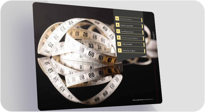 Opening Page 7 A Financial parameters B Operating aggregates C Advertising expenses s er aluationt ame ar D SOTP and segment analyses p DCF and v E Trading multiples F Transaction multiples The luxury and cosmetics financial factbook 2015