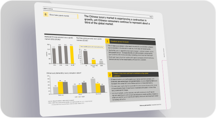 DCF and vIndustry oaluation pverview arameters PPage 39age 39 Ex ec The Chinese luxury market is experiencing a contraction in utiv Global luxury goods Title for section H Global luxury goods market e summary G growth, yet Chinese consumers continue to represent about a third of the global market X Welcome to the third edition of EY’s annual Sales of industry players are expected to grow at a healthy rate, led by double-digit annual growth rate for Financial Factbook for the luxury and cosmetics L’Occitane and Natura from FY11A to FY14E. DCF and v p X ar Increased demand through innovative products will cater to underserved emerging markets. sector. The Factbook combines financial ame data, insight from EY’s global team of sector X aluation Introduction of eco-friendly, sustainable and naturally derived beauty products and cosmetics will stimulate t er specialists and opinions of external experts. s demand in established geographies. Mainland Chinese personal luxury goods Top three global personal luxury goods 1 1 Slowdown across the board market (2011-2014E) markets (2014E) 1 Titles for charts 15.3 15.3 • The Chinese luxury market in 2014 was in line with 2013 at €15 billion, primarily 16.0 15.0 Second position globally after including Hong Kong due to slowdown in the demand for watches, men’s wear and leather goods. Indusw 12.9 80 try oervie 12.0 72.0 • Like-for-like sales struggled the most due to change in customer behavior across v 70 v n 60 demographic groups — increased diversity of preferred brands, and exclusivity, ervietry o o i l quality and value for money becoming increasingly more important than logos. l 8.0 w i n 50 Indus b o i € l l 40 i • Continued impact of anti-corruption and frugality campaigns undermined luxury b 4.0 € 30 23.2 demand and was further exacerbated by the economic slowdown. 20 17.9 10 0.0 0 and disMe 2011 2012 2013 2014E US China and Hong Japan thodology Kong claimer China luxury demand by luxury consumer cohort2 Chinese consumers continue to dominate as top global Titles for charts 60% 2 customers 49% 50% 40% • Chinese consumers are now focused on purchasing more from overseas, with and specific analyS 40% 39% 36% 32% Korea and Japan emerging as hot new destinations. In 2014, there has been a 61% ample s 30% 27% 28% 25% increase in the number of trips by Chinese nationals to these destinations. 23% election 20% • This dominance has further increased with the development of new outlet sites in s China and the fact that Chinese travelers have been enthusiastic visitors of the e 10% s many outlet malls in Europe. 0% Middle class Affluent High net worth • In terms of outlook, a softer economy and political pressures on gifting and 2004 2014 2024 high-end spending are continuing to put pressure on overall spending. However, a Source: Data based on consensus of several brokers’ reports for each C Glo company. weak euro and the low price points are making both travel and shopping in Europe on Sources: Altagamma/Bain and other selected research t s increasingly attractive. act uss NNootteess: 1:M) Warkoert cldawpidite Lalizuaxtuiory Mn is barakseetd os Mn a oonitonre, 2-m0o1n5 Sth aprvienrg Uage apdas otef D, Meacy 2em0b1e5r 2, A0lt1a2g.a mma/Bain ary The 2021) E2 gurroowpteh c: Borarrnedsepd Condos tnso tumhee sr Gaoleos gds, Growotldh rmaatn Se baecthwse, Fen FebrYu1a1rA ay 2n0d F15Y12A/E. The luxury and cosmetics financial factbook 2015