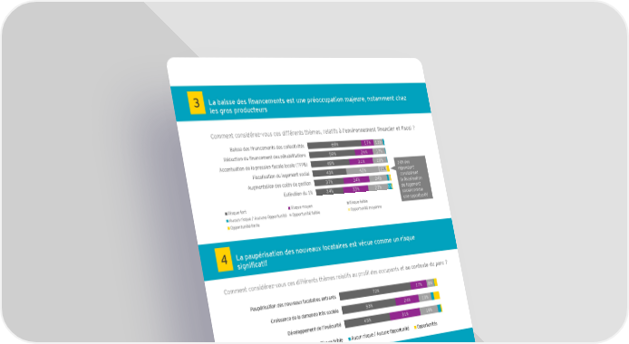 3 La baisse des financements est une préoccupation majeure, notamment chez les gros producteurs Comment considérez-vous ces différents thèmes, relatifs à l’environnement financier et fiscal ? Baisse des financements des collectivités 69% 17% 13% Réduction du financement des réhabilitations 59% 24% 17% Accentuation de la pression fiscale locale (TFPB) 49% 31% 19% 14% des Fiscalisation du logement social 43% 43% 11% répondant Augmentation des coûts de gestion 37% 34% 24% considèrent la fiscalisation Extinction du 1% 34% 33% 27% 5% du logement social comme Risque fort Risque moyen Risque faible une opportunité Aucun risque / Aucune Opportunité Opportunité faible Opportunité moyenne Opportunité forte 4 La paupérisation des nouveaux locataires est vécue comme un risque significatif Comment considérez-vous ces différents thèmes relatifs au profil des occupants et au contexte du parc ? Paupérisation des nouveaux locataires entrants 72% 17% 8% Croissance de la demande très sociale 53% 24% 13% Développement de l'insécurité 45% 31% 19% Risque fort Risque moyen Risque faible Aucun risque / Aucune Opportunité Opportunités 5 Les nouvelles exigences des locataires et l’évolution de leur profil portent de nombreuses opportunités pour les bailleurs Comment considérez-vous ces différents thèmes relatifs aux nouvelles exigences des locataires ? Vieillissement de la population 34% 15% 29% 13% Exigence du locataire par rapport au service rendu 29% 22% 27% 9% 9% Exigence du locataire pas rapport au logement 24% 26% 29% 7% 9% Opportunité forte Opportunité moyenne 21% des locataires du parc HLM Opportunité faible Aucun risque / Aucune Opportunité ont plus de 65 ans en 2012, Risque faible Risque moyen contre 15% en 1984* Risque fort * Source : USH « Les Hlm en chiffres, 2015 »