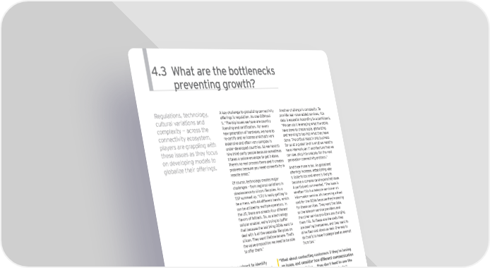 4.3 What are the bottlenecks preventing growth? Regulations, technology, A key challenge to globalizing connectivity Another challenge is complexity. To cultural variations and offerings is regulation. As one OEM put provide real value-added services, rich It, “The big issues we have are country data is essential According to a participant, complexity — across the licensing and certification. For every “We can start leveraging what the OEMs connectivity ecosystem, new generation of hardware, we have to have done to create scale, globalizing re-certify and re-license and that’s very and working to tap into what they have players are grappling with expensive and often very complex in done. The critical mass in this business these issues as they focus under-developed countries. So we have to for us at a global level is what we need to hire third-party people because sometimes have internally an IT architecture that we on developing models to it takes a yellow envelope to get it done. can use, plug into and play for the next globalize their offerings. There’s no real process there and it creates generation connectivity protocol.” problems because you need connectivity in And then there is tax. As globalized remote areas.” offerings increase, establishing who Of course, technology creates major is liable to tax and where is likely to challenges — from regional variations in become a complex (and expensive) issue. obsolescence to silicon lifecycles. As a A participant commented, “The issue is TSP summed up, “LTU is really getting to whether this is a telecom service or an be a mess, with 44 different bands, which information service. It’s becoming a fixed can be utilized by multiple operators. In cost for the OEMs because they’re paying the US, there are already four different for these services. They want the data, flavors of fallback. So, as a technology so the telecom service providers and cellular enabler, we’re trying to buffer the other service providers are charging that because the last thing OEMs want to them this. So these are the costs they deal with is all the separate lifecycles on are bearing themselves, and they want to silicon. They want lifetime tenure. That’s drive that cost down as well. One way to the value proposition we need to be able do that is to have it categorized as exempt to offer them.” from tax.” “It’s obviously important in the contract to identify “What about contacting customers if they’re having separation of telecom-linked charges versus data and an issue, and consider how different communication information-related charging.” methods are in China … they don’t tend to use the channel for emails the way we communicate.” “Another question, is the dealer a reseller or not? There are complications around you selling this “As soon as a state picks up on this and says this is service at point of sale if you want to do that.” a multi-million dollar industry, people are selling this information and we’re going to tax it, which is when it will really start hitting you.” The quest for telematics 4.0 | 19