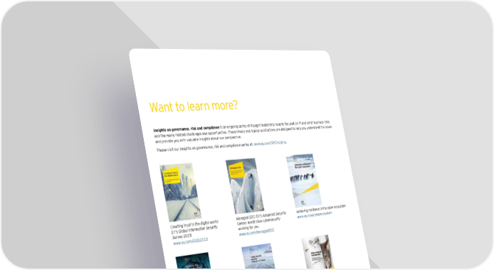 Want to learn more? Insights on governance, risk and compliance is an ongoing series of thought leadership reports focused on IT and other business risks and the many related challenges and opportunities. These timely and topical publications are designed to help you understand the issues and provide you with valuable insights about our perspective. Please visit our Insights on governance, risk and compliance series at: www.ey.com/GRCinsights. Creating trust in the digital world: Managed SOC: EY’s Advanced Security Achieving resilience in the cyber ecosystem EY’s Global Information Security Center: world-class cybersecurity www.ey.com/cyberecosystem Survey 2015 working for you www.ey.com/GISS2015 www.ey.com/managedSOC Reducing risk with Cyber Threat Cybersecurity and the Internet of Things Cyber program management: identifying Intelligence www.ey.com/IOT ways to get ahead of cybercrime www.ey.com/CTI www.ey.com/CPM Get ahead of cybercrime: EY’s Global There’s no reward without risk: Unlocking the value of your program Information Security Survey 2014 EY’s global governance. risk and investments: How predictive analytics can www.ey.com/GISS2014 compliance survey 2015 help in achieving successful outcomes www.ey.com/GRC2015 www.ey.com/PRM 16 | Using cyber analytics to help you get on top of cybercrime — Third-generation Security Operations Centers