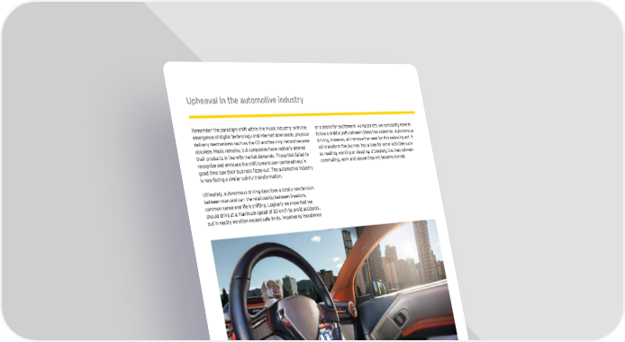 Upheaval in the automotive industry Remember the paradigm shift within the music industry: with the or a desire for excitement. As motorists, we constantly have to emergence of digital technology and internet downloads, physical follow a middle path between these two extremes. Autonomous delivery mechanisms such as the CD and the vinyl record became driving, however, will remove the need for this balancing act. It obsolete. Music remains, but companies have radically altered will transform the journey into a time for other activities such their products in line with market demands. Those that failed to as reading, working or sleeping. Ultimately, the lines between recognize and embrace the shift toward user-centeredness in commuting, work and leisure time will become blurred. good time saw their business fizzle out. The automotive industry is now facing a similar painful transformation. Ultimately, autonomous driving describes a totally new tension between man and car: the relationship between freedom, common sense and life is shifting. Logically we know that we should drive at a maximum speed of 30 km/h to avoid accidents, but in reality we often exceed safe limits, impelled by impatience Shaping the future of the automobile What is the upshot for the automotive industry with its 129- close cooperation in the past, they are now increasingly year-old roots? The shift to autonomous driving will ultimately recognizing the win-win potential for both sides. The greatest force car manufacturers — in a symbolic sense — to relinquish the challenge remains the differences in development cycles between steering wheel while still being in charge of the vehicle. In effect, the traditionally long-term oriented automotive industry and the automotive industry must find a whole new business model the fast-moving digital industry. It still requires a great deal that intensifies the experience of the intrinsic value of the car and of synchronization on both sides before the two industries replaces the old attractions of design and horsepower. This will harmonize perfectly. require a new set of skills, and innovative collaborations between car manufacturers and companies from the IT and internet industries. Here, developments are already afoot. New links between automotive manufacturers and digital players are being forged on a monthly basis. While these organizations have avoided Who’s in the driving seat? | 11