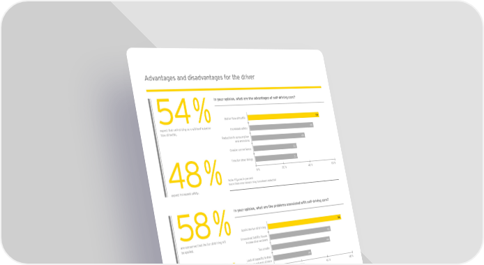 Advantages and disadvantages for the driver In your opinion, what are the advantages of self-driving cars? 54 % Better flow of traffic 54 expect that self-driving cars will lead to better Increased safety 48 flow of traffic, Reduction in consumption 40 and emissions Greater convenience 32 Time for other things 31 0 % 20 % 40 % 60 % 48 %Note: Figures in percent More than one reason may have been selected expect increased safety. In your opinion, what are the problems associated with self-driving cars? 58 % Spoils the fun of driving 58 are concerned that the fun of driving will Unresolved liability issues 46 be spoiled, in case of an accident Too unsafe 44 Lack of capacity to deal 28 with large volumes of data 46 % 0 % 20 % 40 % 60 % Note: Figures in percent are concerned about unresolved liability More than one reason may have been selected issues in case of an accident. For decades, a car’s worth was dominated by emotional very least, a more pragmatic interaction. On the other hand, considerations, with it serving as both a status symbol and the bond of trust may deepen when control is relinquished to treasured possession. Man and vehicle formed a close bond an autopilot. A completely new type of relationship between because the car represented a valuable asset that needed man and car may well emerge. protection. But can this continue to be the case? Trends toward integrated mobility concepts such as car sharing may lead to an estrangement between man and machine or, at the Who’s in the driving seat? | 9